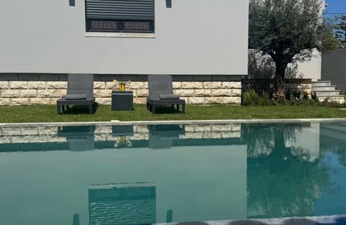 Beautiful villa located in a quiet and pleasant area, with a French-style garden, with an extensive grassy area for leisure and outdoor dining, an inflatable children's pool (4.04m high, 2.01 wide and 1.00m high), where you can enjoy and socialize with your family or with friends in peace in a relaxing and comfortable environment. Very well located. It is possible to walk to supermarkets, ATM, bus stop, café/pastry shop (1 min) and pharmacy (5 min) among other services. Close to beaches and Arrábida Natural Park.