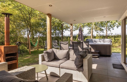 This detached holiday home is located in the spacious, green holiday park Parc Duc de Brabant. It's located at 4 km from the small-scale centre of Diessen, 18 km from Tilburg and 25 km from Eindhoven. The holiday home is fully and comfortably furnished and consists of two floors. On the ground floor, you will find a living room with TV and an open-plan kitchen with, among other things, a microwave and a dishwasher. There is a double bedroom and a bathroom with bathtub and shower. There is a separate toilet in the hall. On the first floor, you will find a double bedroom. All the beds are single box-spring beds, either pushed together to make a double bed or used separately in a twin-room setup. A wooden cot, high chair and stair gate are provided as standard. An indoor storage room with washing machine and dryer completes the picture. Outside is a garden with a covered terrace, garden furniture, sofa, hammock, patio fireplace and charcoal barbecue. In summer there are some sun loungers. The real eye-catchers of this holiday home are the outdoor hot tub and sauna. Perfect for complete relaxation. There is parking for one car directly at the holiday home. Central parking spaces are also available at the holiday park. At holiday parkParc Duc de Brabant, various holiday homes can be booked for two to ten people.