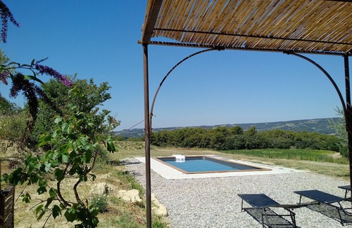 House with private pool dominant without vis-à-vis with a superb view on the green landscape, quiet assured, consisting of 2 bedrooms upstairs including 1 with a terrace solarium, large dressing room, 1 bathroom walk-in shower, on the ground floor living room and kitchen, 2 large fenced terraces with garden furniture, garden of 2400m2. House renovated this year Ideally located in the countryside but 5 minutes from downtown Vaison la Romaine.