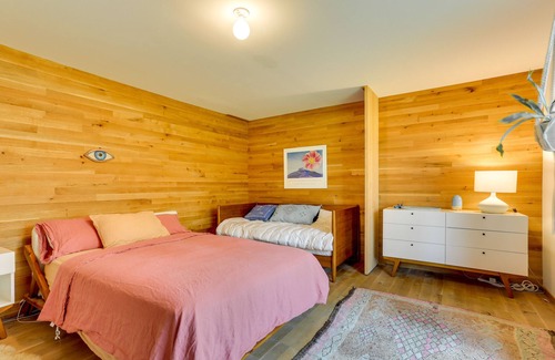 Take in unbelievable views of the Sundown Wild Forest through floor-to-ceiling windows when you stay at this 3-bedroom, 2.5-bath vacation rental. Boasting a luxurious contemporary interior and a large yard fully equipped with a private pool, hot tub, and fire pit, this home has something for travelers of all ages! Although it may be tempting to spend all day lounging in the idyllic backyard, don't forget to explore the surrounding ski resorts, trails, and wineries that Kerhonkson has to offer!