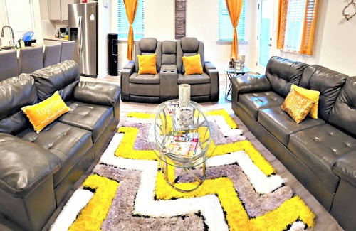 With 4 bedrooms including 1 King, 2 queen beds, and 1 Futon bed, this cozy retreat offers plenty of space for guests to relax. Enjoy the luxury of 3 full bathrooms, with all of your daily essentials. The property also features a large backyard with lake for fishing, free WiFi, and a washing machine and dryer for added convenience.