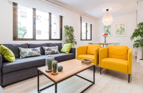 The apartment in Madrid has 4 bedrooms and has capacity for 10 people. The apartment is 130 m². The accommodation is equipped with the following items: lift, iron, internet (Wi-Fi), hairdryer, central heating, air conditioning throughout the house, 1 TV.In the vitroceramic independent kitchen, refrigerator, microwave, oven, freezer, washingmachine, dishwasher, dishes/cutlery, kitchen utensils, coffee machine, toaster, kettle and juicer are provided.