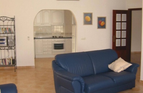 Lounge and dining area: The lounge is large and comfortably furnished. It is cool, light and airy and an ideal relaxation spot. It has a wide screen modern TV with DVD . There is a bookshelf with supply of books and a few games. There is a large dining table with 6 chairs.The kitchen is accessed through a large archway from the dining area.