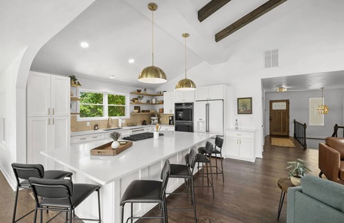 This home has plenty of seating areas indoors and outdoors - great for hosting friends and creating traditions with family. The kitchen is the heart of the home, where food, family, and friends collide. The spacious island with a gas cooktop allows the chef to be part of the party while leaving seating for 6 and plenty of room for more to gather.
