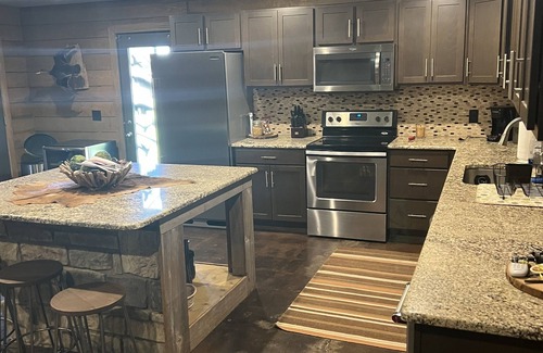 Hunting lodge with room to sleep up to 19. The Corner Lodge is furnished, a full kitchen with granite countertops, wireless internet, washer/dryer, 3 full baths, outdoor fire pit. Lots of space for any event.