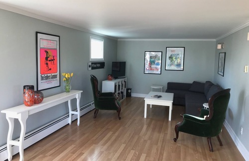 Our bright and airy family beach house is located across the road from Hunt's Point Beach. Come and relax on the spacious deck with ocean view and sleep with the sound of the ocean outside your windows. This three bedroom, two full bathroom detached house with all of the conveniences of home. We are set up for families or those wanting to work from a serene remote location. One of Canada's most stunning beaches, Summerville Provincial Park is less than 5 min drive away and Hunts Point beach is located across the road. Close to casual seafood or upscale contemporary dining options. Next to Fishermen’s Cove Campground. The Town of Liverpool is a short drive away for dining, groceries, pharmacy and other amenities, including a seasonal produce and a fitness centre. This is an all year home with heating and makes a great quiet winter getaway.