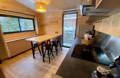 Prepare breakfast with your family while admiring the forest. This well-designed culinary space encourages conviviality during meals with friends.