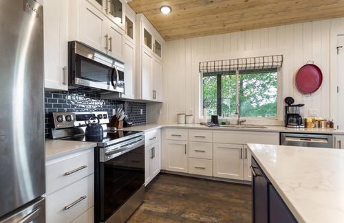 PRIVATE DOCK on the Island Park Reservoir! WATERFRONT!! BOATING! WATERSKIING! FISHING! Hygge Lakehouse is sure to “give a feeling of happiness” on your vacation to Island Park and Yellowstone National Park. Hygge Lakehouse has 5 private bedrooms and a marvelous bunk room, this remarkable new cabin sleeps 15. From the floor to ceiling windows in the living room you can enjoy the breathtaking view of the river and private dock. At Hygge Lakehouse the kitchen will have any gourmet chef blissfully happy with ample amenities for any home cooked meal, plenty of prep space and 2 full size refrigerators. The main floor master bedroom, with an en suite bathroom, has a king bed and a private television. There are two additional bedrooms on the main level with queen beds. An adjacent full bathroom and a half bath are conveniently located on the main level. Upstairs you will find two additional bedrooms with queen beds and two additional bathrooms. The younger travelers will thoroughly enjoy the marvelous bunk room, giving them plenty of space and their own 72 inch television. The wrap around covered deck allows for our guests to appreciate the outside mountain air even in inclement weather. Star gazing with the moonlight shining off the water will surely be a favorite pastime. Outdoor dining is a breeze with seating for 16 around various tables. Not to be left out is the impressive upstairs game room that is sure to be everyone’s preferred room in the house; enjoy a game of pool, play ping pong or try your hand at air hockey; all while watching the latest game on the 72-inch television. Hygge Lakehouse has 2 full size washer and dryers for the convenience of our guests.