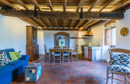 "I Puledri", 3-room apartment 80 m2 on 1st floor. Spacious, practical and rustic furnishings: open large living/dining room with panoramic window with open-hearth fireplace, dining table and TV (flat screen). 1 double bedroom. 1 double bedroom with shower/bidet/WC. Open kitchen (dishwasher, Gas stove, 4 gas rings, toaster, kettle, microwave, electric coffee machine). Shower/bidet/WC. Heating. Natural stone floors. Small terrace roofed, patio. Terrace furniture, balcony furniture, barbecue. Very beautiful panoramic view of the countryside. Facilities: washing machine, mosquito net, children's high chair, baby cot for up to 2 year olds, hair dryer, logs (extra). Internet (WiFi, free). Parking at the house. Please note: one double bedroom is outside the apartment. Non-smokers only. Private entrance, smoke alarm, fire extinguisher. IT048032B4ZL2WTLKE