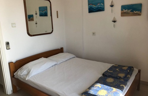 Room 1 consists of a double bed, a wardrobe, desk, TV, Air-condition and balcony with sea view.