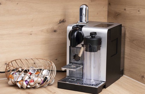 Induction hob, oven, electric kettle, refrigerator with freezer, dishwasher, coffee maker, kitchen and tableware
