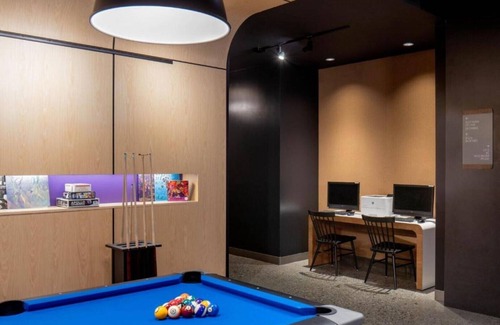 This welcoming hotel in San Jose offers a cozy bedroom with a comfortable queen bed. Guests can enjoy amenities like heating, AC, WiFi, and access to a fitness room. The bathroom is equipped with a hair dryer for added convenience. This awesome property is the perfect spot for a relaxing stay in the city. We look forward to hosting you at our place.