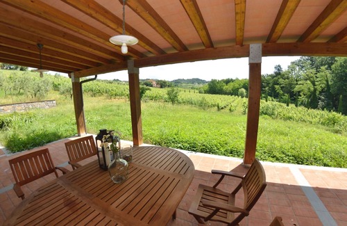 The holiday home is located on the smooth hills of Montecarlo, where vineyards and olive groves extend until the horizon; the landscape transforms and changes into colours of the different seasons.