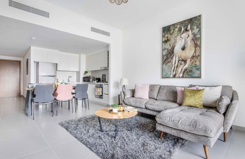 This modern 2BR unit in Downtown Views II blends convenience w/ a stylish decorative interior. You can stroll directly to Dubai Mall via its connected bridge – 5 mins away!