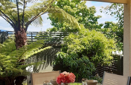 Rose Cottage is hidden away on a quiet street right in the heart of town, a spacious 2 bedroom house with well appointed kitchen and living/dining room. The master bedroom has a queen bed and the second bedroom has a king sized bed that could be split into 2 singles. It is two minutes amble to New World and five minutes to restaurants, cafes and shops. The small, but delightful garden is filled with roses and specimen trees. From the living area you step out to a closed in and secluded patio. This space invites you to sit out and relax with a coffee or a glass of wine, cook a feast on the BBQ and dine al fresco. Single car garage and off street parking. WiFi and laundry facilities available.