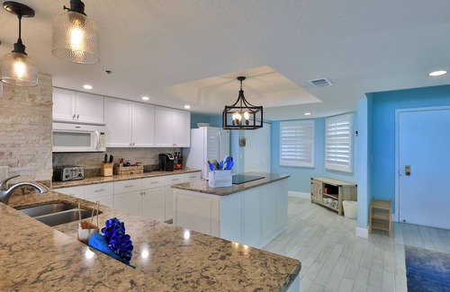 This beautifully renovated 2-bedroom, 2-bath condo offers a stylish and spacious escape with light tile flooring throughout, all-new furnishings, and Internet-enabled TVs in every room. The gourmet kitchen is a chef's dream, featuring an extra-large island, new appliances, and elegant countertops—fully stocked with everything you need to prepare delicious meals.