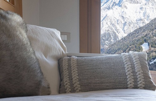Enchanting, refined, and filled with natural light, this charming apartment nestled in the heart of the Alps is a perfect oasis of relaxation and elegance. Located in an elevated position, it offers spectacular, breathtaking views that encompass the majestic surrounding mountains, delivering a unique experience for those seeking an authentic connection with nature.The apartment features a spacious and inviting living area, complete with a comfortable dining space, a modern open kitchen, a charming wood-burning fireplace (currently not in use due to administrative restrictions), and a cozy sofa bed accommodating two guests. The intimate and relaxing double bedroom ensures peaceful nights, while the bathroom is equipped with all the necessary comforts for a carefree stay.Outside, guests can unwind in the lovely private garden, perfect for soaking up the sun or enjoying outdoor meals in a serene and rejuvenating setting. Additionally, the property includes an exclusive covered garage, elevator access, free Wi-Fi, and a complete set of fresh and carefully curated linens.Its strategic location makes this residence ideal for winter sports enthusiasts, with the majestic Adamello ski resort just minutes away, as well as for those who wish to explore scenic trails, hiking paths, and MTB routes during the warmer seasons.