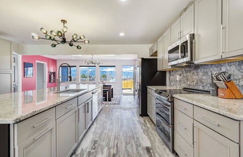 Welcome to our pet-friendly, ranch-style retreat, perfect for families and large groups! Enjoy an open-concept living, dining, and kitchen area, ideal for gathering. Take in breathtaking 180-degree views of Pikes Peak, unwind in two master suites with en suite baths, and stay cool with central AC. Have fun with the pool table and let your pets roam in the large fenced yard. Conveniently located near Colorado Springs’ east-side shopping and amenities, this home has it all!