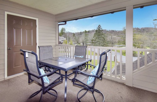 Experience breathtaking lake and property views from this elegant upstairs 2-bedroom condo at Chetola Resort. With 16 steps to the entrance, this thoughtfully designed retreat features a king bed, queen bed, and queen sleeper sofa — along with a cozy gas fireplace, skylights, and whirlpool bath. Ideal for families or small groups, this condo blends comfort and sophistication in a picture-perfect mountain setting.