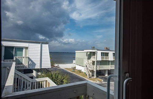 As soon as you step into the entrance of Island's End you will see it has been recently remodeled! Just up the stairs from the entrance you will find the kitchen with custom cabinetry, granite countertops, and Stainless Steel appliances. There is tile floor throughout the condo. The open kitchen/dining area features a central work island for additional work and storage space.. The kitchen island also has two counter height bar stools for guests to sit and relax while enjoying the view of the sound through the large patio door. The kitchen table seats six guests comfortably. The kitchen is fully equipped with everything you need to cook a wonderful meal. There are two pantry cabinets to store the groceries/supplies you bring. A 40 gallon water heater will help to ensure hot water in kitchen and bathrooms. Just through the kitchen/dining room patio door is a large balcony that wraps around to the living area and features additional outside dining. Just after purchasing the condo in May 2018, we updated the living area with two full size new leather couches. A large area rug centers the room. A large coffee table and three end tables help provide a comfortable area to relax. Table lamps, black out curtains, art and accessories make the living area beautiful as well as functional. TV ( SMART TV and WIFI included. Use your own streaming apps), books and board games are stored in the console. The condo has a (2020) full size washer and dryer located just off the kitchen in a laundry closet. Several beach towels are located above the washer/dryer for guests to use as well as a small drink cooler in the outside storage room.