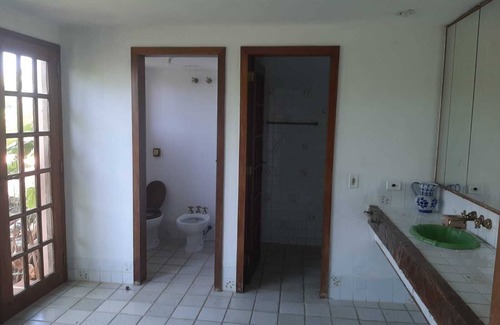 Located in Guarujá, this 5-bedroom, 6.5-bathroom vacation home lets you experience it all. Fans of nature and the outdoors will love being 12 minutes by foot from Pernambuco Beach and 2 minutes by car from Mar Casado Island. Guaruja Golf Club is an easy 15-minute walk away or make quick work of the 9-minute drive to Enseada Beach.