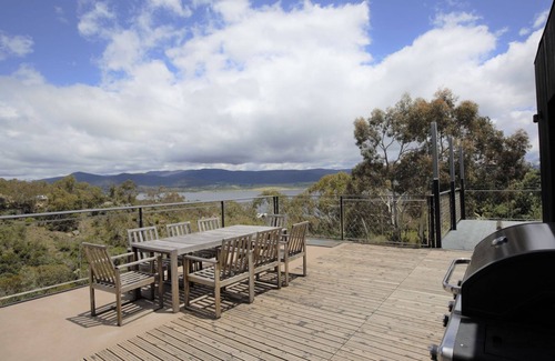Jindy Haus is a brand new, European house offering some spectacular views. The house is all on a single level that opens up on a large deck, perfect for taking in the beautiful sunsets over the lake.
