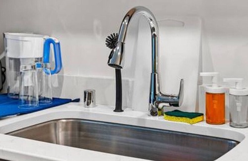 The apartment features a spacious full bathroom stocked with all necessities and essential toiletries, so you wont need to bring your own.