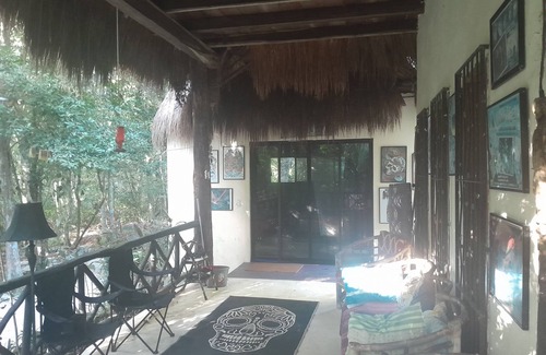 19 km from Tulum Pueblo and its beaches,19 km to Coba ruins.house is located 800 meters off the road . Property has a BBQ area and a hammock chillout area. This is jungle living, no city lights and sounds. Just the sounds of the jungle