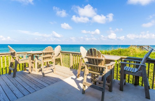 Always Included, complimentary linens and made beds! Designed with all the amenities to make your vacation memorable, this Oceanfront home was renovated to include new tile floors, new Jack and Jill bathroom, new vanities in all other bathrooms, all new windows, new roof, deck, and light fixtures. Come sit on the ocean-facing deck and drink in the sunshine and enjoy the wide ocean vistas. This home offers a den that closes with pocket doors to make a private fifth bedroom.