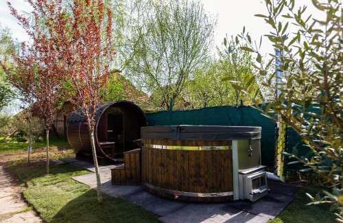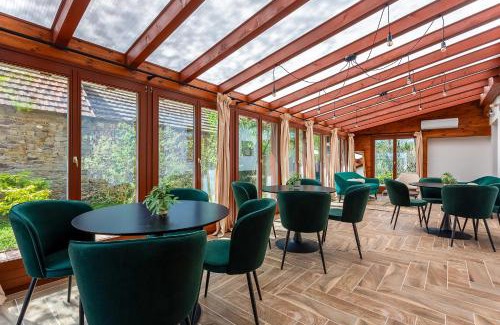 18 miles from Sümeg Castle in Kékkút, Kékkút Vendégház offers accommodations with access to a hot tub, spa facilities, and open-air bath. 20 miles from Tihany Abbey and 23 miles from Thermal Lake Hévíz, the property features a garden and a terrace. The accommodation provides a sauna, free Wifi throughout the property, and family rooms. Featuring a patio, the units offer air conditioning and have a flat-screen TV and a private bathroom with shower and free toiletries. At the guest house, each unit is equipped with bed linen and towels. Guests can also relax in the shared lounge area. Tapolca Lake Cave is 6.6 miles from the guest house, while Szigliget Castle and Museum is 9.2 miles away. Hévíz–Balaton Airport is 29 miles from the property.