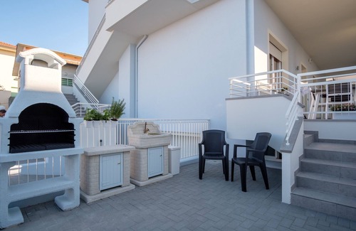 Ground floor apartment (raised by 6 steps), in an elegant context totally renovated, inside a fenced courtyard. It overlooks the beach and the main town square directly. It consists of 2 double bedrooms, one with a bunk bed, kitchen with double sofa bed (17 cm high mattress), 2 private bathrooms with shower. It has the fenced porch for exclusive use, with table and chairs, TV and outdoor living, and the private fenced garden, equipped with barbeque. It is tastefully furnished, according to the latest trends in the field of furniture. The kitchen is equipped with all the most modern appliances (induction hob, dishwasher, washing machine, microwave, etc ....) Ideal for families with children, or for anyone who wants to enjoy the perfect location on the beach, and to participate in the evenings organized by the San Mauro Mare Village, in the square or on the waterfront. Furthermore, for maximum security, the apartment is also equipped with an anti - intrusion alarm system