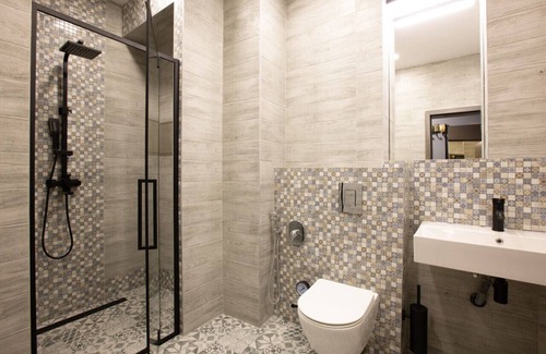 ✦ The modern bathroom offers a luxurious bathing experience, with a bathtub, shower, and bidet available for guests' convenience. With heating strolls to keep you warm and amenities like shampoo provided, every aspect of your stay is thoughtfully catered to.