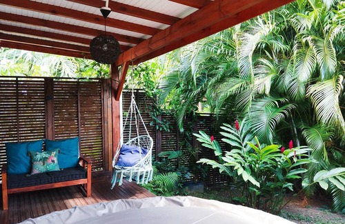 You can relax in the tropical garden or in the jacuzzi which are entirely privatized. For nature lovers: the outdoor shower hidden from view!