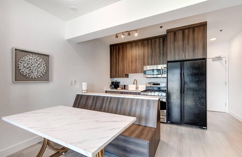 Kitchen: Enjoy cooking with the fully-equipped kitchen featuring top-of-the-line appliances & a banquette seating for 4.