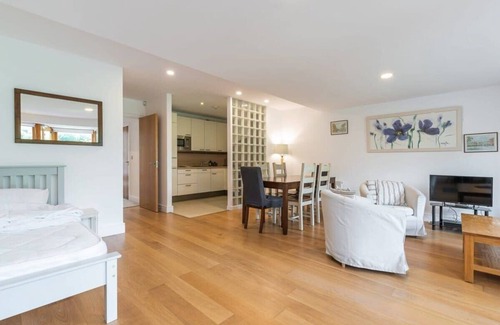 The modern kitchen comes fully equipped and offers spacious worktop space and storage. All modern conveniences are supplied.