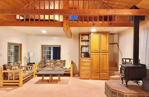 This rustic 2-bedroom cabin features a cozy sleeping loft (stair-accessible), a full kitchen, hot shower, and a spacious lounge area. Outside, relax on the porch with stunning views of the Domelands Wilderness, grill dinner on the stove top, or unwind around the outdoor firepit. Sleeps up to 6 guests with 1 king, 1 queen, and a queen mattress in the loft.