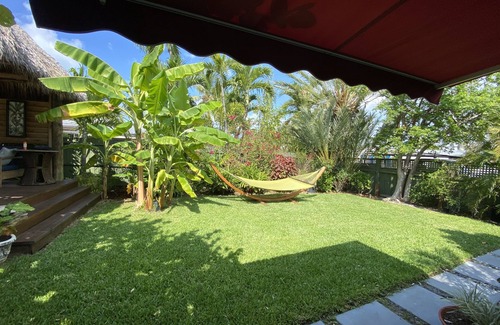 Unwind and reconnect with nature at our tranquil VRBO property. As you enter the serene sanctuary, you'll be enveloped by the soothing ambiance of the lush gardens and spacious lawn. The centerpiece of this tranquil paradise is a stunning pool that shimmers invitingly in the sunlight, beckoning you to take a refreshing swim. Relax under the calming shade of the tiki hut, listening to the gentle rustle of the leaves as you meditate, read a book, or simply let your thoughts wander.