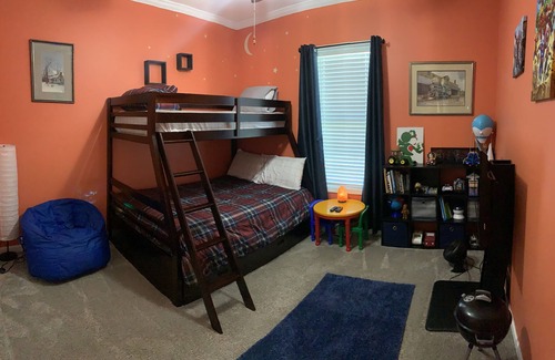 This home is regularly used as a family home, so it comes full of all your daily necessities. The kitchen is stocked with full sized fridge, convection oven, pots, pans, cooking utensils, and plate/silverware; in addition: spices galore, basic cooking ingredients, coffee & espresso, and condiments. The home is a three bedroom home, each decorated uniquely. The master bedroom has a mater bath attached, with full shower and garden bathtub. The master bath has many plants in it to make your bubble bath even more relaxing. There is an additional bathroom with a shower/tub combo. Both bathrooms have liens and basic shower care items. The master bedroom has a king bed, second bedroom has a queen, and the third has a full/twin bunkbed. There are blackout curtains, smart televisions and additional bedding in all rooms. There is a laundry room with a washer and dryer; basic needs for one or two loads provided. There is a dining table for four and two barstools at the island in the kitchen. The living room comes with amble seating including one couch with chase and another large couch as well. The large couch doubles as a queen size sleeper, with memory foam cover to add (stored in master bedroom closet). There is a small exercise space with simple equipment; bike, rower, weights, resistance bands, and other small exercise items. The house has a back patio and covered front patio. There is seating on both. Private backyard with toys for adults and children alike. There is a small garden in the spring, summer and fall for fresh vegetables, a grill and smoker for the adventurous, and a nice neighborhood to take a walk around and see some beautiful mountain views. This is a well loved home with lots to offer. Not only are the amenities great but the location is wonderful as well. There are countless bars, breweries, shopping stores, and restaurants within a few miles radius; as well as the Asheville Reginal Airport.