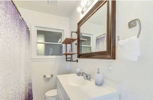 Step outside onto our decked patio with string lights and enjoy some fresh air while playing a game of cornhole or grilling your favorite meals on our BBQ grill. Our fenced-in backyard ensures complete privacy and security during your stay. Additionally, our 2-car drive port will ensure that your vehicles are secure and off-street.