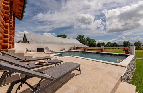 Look forward to a relaxing and active vacation with your extended family or family friends near the Plitvicka Jezera National Park. The charming wooden house promises you a relaxing stay with its numerous rooms and pleasant furnishings. You can enjoy the rustic atmosphere on the balcony and let your gaze wander over the landscape.