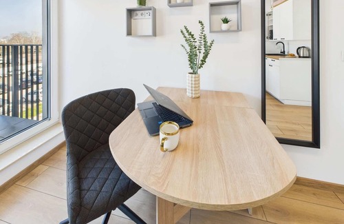 A functional and efficiently designed studio, perfect for a couple or friends looking for a comfortable stay in the vibrant heart of Warsaw. This cozy 15 m² studio is conveniently located, providing easy access to all the city's attractions. The studio accommodates up to two guests. In the living area, there is a sofa that, when unfolded, offers a comfortable sleeping space for two. The studio also features a balcony, providing an additional space to relax in the open air. Despite its compact size, the kitchenette is designed for convenience. It is equipped with a modern induction cooktop, a refrigerator with a freezer, a microwave, and an electric kettle, making daily tasks easier. A toaster and a dining table are also available, allowing guests to enjoy meals together. The bathroom, decorated in light tones, features a shower and a hairdryer, ensuring comfort and freshness throughout the stay. Free Wi-Fi is available throughout the studio, allowing for easy trip planning, staying in touch with loved ones, or remote work. Additionally, the apartment includes a smart TV with internet access and an HDMI cable, providing entertainment after a day of exploring. Guests also have access to a standing clothes dryer, a vacuum cleaner, an iron, and an ironing board. The building is equipped with an elevator, ensuring easy access to the apartment without the need to climb stairs. Bicycle racks are available next to the building for cycling enthusiasts. Don't wait—book this compact and functional studio in a prime location today and enjoy a fantastic stay in Warsaw!