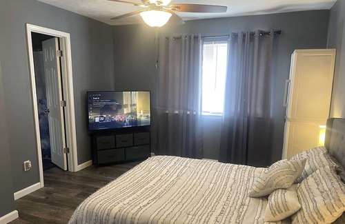 Enjoy your stay with a completely remodeled townhouse. We have free wifi, Disney +, Hulu, Prime, etc. Don’t leave your four-legged friends at home, they will stay safe in the fenced-in back yard. If you want to sleep in, we also have blackout curtains. Just a short 20 minute drive to the beach, free from the woes of beach traffic.