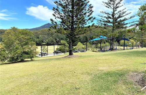 This cosy property has an open floor plan including the kitchen, dining and lounge area. Throughout the house there is an air conditioner and ceiling fans maximizing comfort for tenants. With its own electronic blinds is the deck situated at the front of the property that overlooks the park land and distant mountain view's creating a tranquil atmosphere. There are two bedrooms that both have built-in wardrobes being convenient for holiday guests. The main bedroom has access to the two-way bathroom, there is also a separate toilet accessible for tenants when the bathroom is occupied. At the back of the property there is a private outdoor area where you can sit back and relax or entertain.
