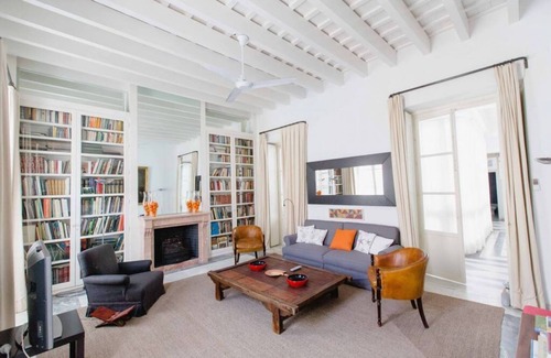 The house has a spacious living room with fireplace, library, reading chairs and sofa and plasma TV, a fully equipped kitchen and separate dining room, a master bedroom with double bed and bathroom, two double bedrooms with 90 single beds cm and another bathroom. The building has an elevator, internet connection by WIFi and all the necessary amenities to rest and enjoy your stay in Cádiz.