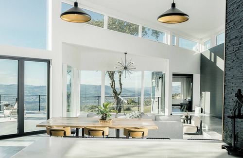 As you step inside La Cava, you're welcomed by stunning views of the valley reaching San Francisco. The house features large windows that bring in daylight and offer panoramic views of the surrounding greenery. Enjoy your morning coffee on the veranda or a sunset wine with the beautiful outdoors always in sight.