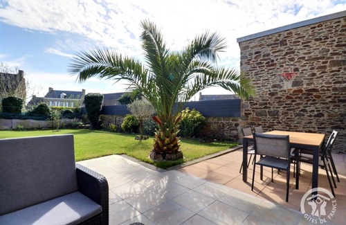 House arranged on three levels. On the ground floor: - a kitchen - a living room with lounge and wood stove - a laundry room with sink - a separate toilet On the first floor: - two bedrooms each with a 140X190 bed - a bedroom with a 140X190 high bed - a bathroom - a separate toilet On the second floor: - a bedroom with a 160X200 bed - a communicating shower room - a separate toilet Outside: - parking on the street in front of the house on private space - an enclosed garden with terrace Semi-detached accommodation on both sides with year-round homes. Perfectly equipped holiday rental for quality stays for 8 people. Find here all the comforts to enjoy an environment conducive to relaxation: a large terrace with garden furniture and outdoor furniture, a built-in barbecue and a beautiful wooded area with lawn await you in fine weather to share friendly moments. This cottage is located in the heart of the village of La Fresnais, a small town ideally located at the crossroads of Saint-Malo and its corsair city 14 km away, Cancale and its port of La Houle with oyster market and Dol de Bretagne, a small town of character in Brittany and its cathedral.