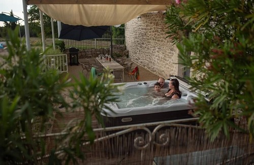 At the crossroads of the departments of Dordogne, Périgord and Lot-et-Garonne, La Grange de Janes is a very beautiful vacation spot that comfortably accommodates up to 10 people. In the heart of the Cahors vineyard, this old barn renovated in a style combining the authenticity of Quercy Blanc stones with contemporary furniture and decoration. Here we like the 100m² living room composed of a well-being and relaxation area, a living room and a dining room, we appreciate the professional kitchen where nothing is missing to prepare unforgettable meals with family or between friends, and we love the shaded outdoor terraces, one of which has its jacuzzi...all with a view of the swimming pool and the surrounding countryside. Here, it's sure, Eric and Véronique will make every effort so that you can enjoy every minute of your stay, in peace and quiet!