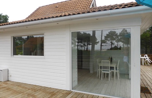 An ocean view chalet at La Jenny, high & private it has 80 square metres of deck/terrace where you can watch the sun set when having your evening meal after a days sun bathing. There are four outdoor showers and only a 5 minute walk to the worlds only naturist golf course. A kitchen with dishwasher & new hob & oven, with indoor dinings as well as outdoor dining. Perfect for a family, a couple of couples or just a couple. La Jenny is located in the largest pine forest in Europe with the longest beach in Europe. No tacky towns, just natural beach with dune behind. Life guards are in service June, July & August. There are many facilities at LJ, golf, tennis, table tennis, petanque , 4 swimming pools, yoga, archery and bikes for hire. If you are active, then take your own bike as there are cycle paths all through the forest and along the coast to Cap Ferret to the south & Lacanau to the north. There are also world class golf courses in the region. Nearby you have the Bassin d'arcachon with it's fantastic seafood, oysters the speciality and the best fruits de mer in the world.