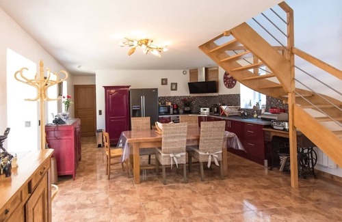 Welcoming and fully equipped farmhouse 2 steps from the large beaches and wild dunes of Plouhinec ... Can accommodate 6 people, ideally 4 adults and 2 children, all comfort. Bikes and cart available.