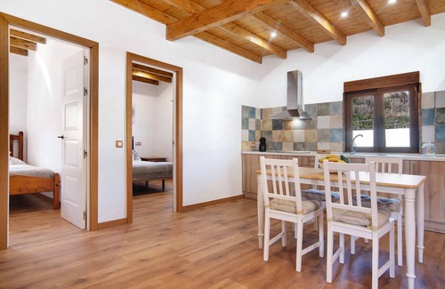 The rural house 'La Tirajanera 1+2' is located in Vega de San Mateo and offers beautiful mountain views. Each unit, measuring 60 m², features a living room with a sofa bed for 2 people, a fully equipped kitchen, 4 bedrooms, and 1 bathroom, accommodating up to 10 guests. Additional amenities include high-speed Wi-Fi (suitable for video calls), a dedicated workspace, smart TV with streaming services, as well as books and toys for children. A high chair is also available.